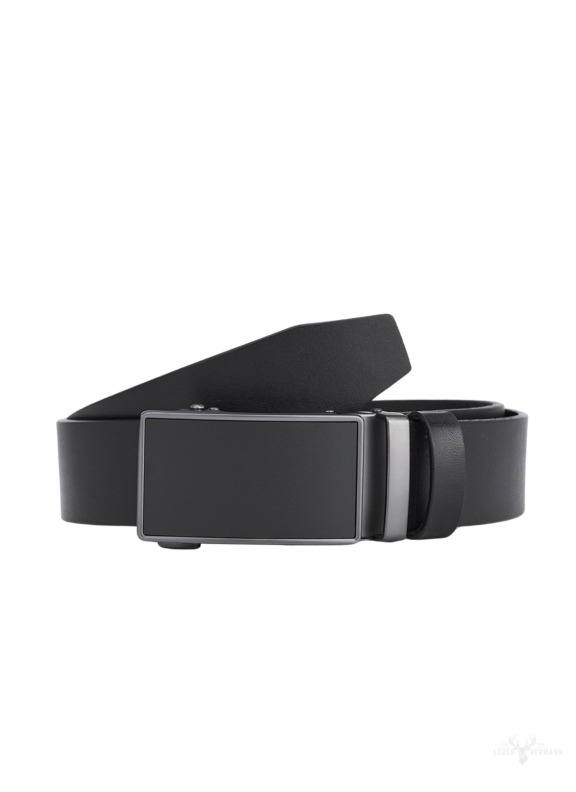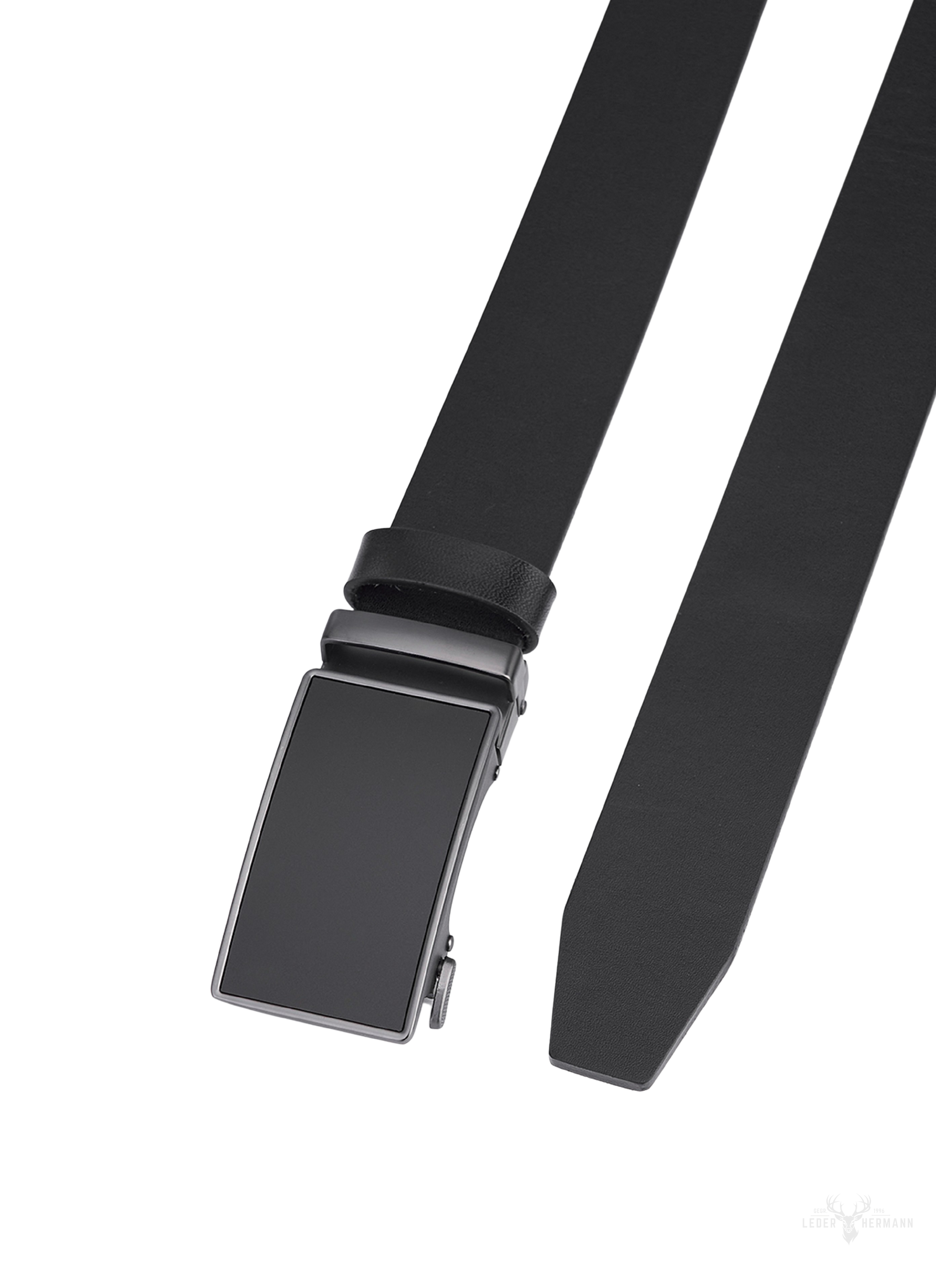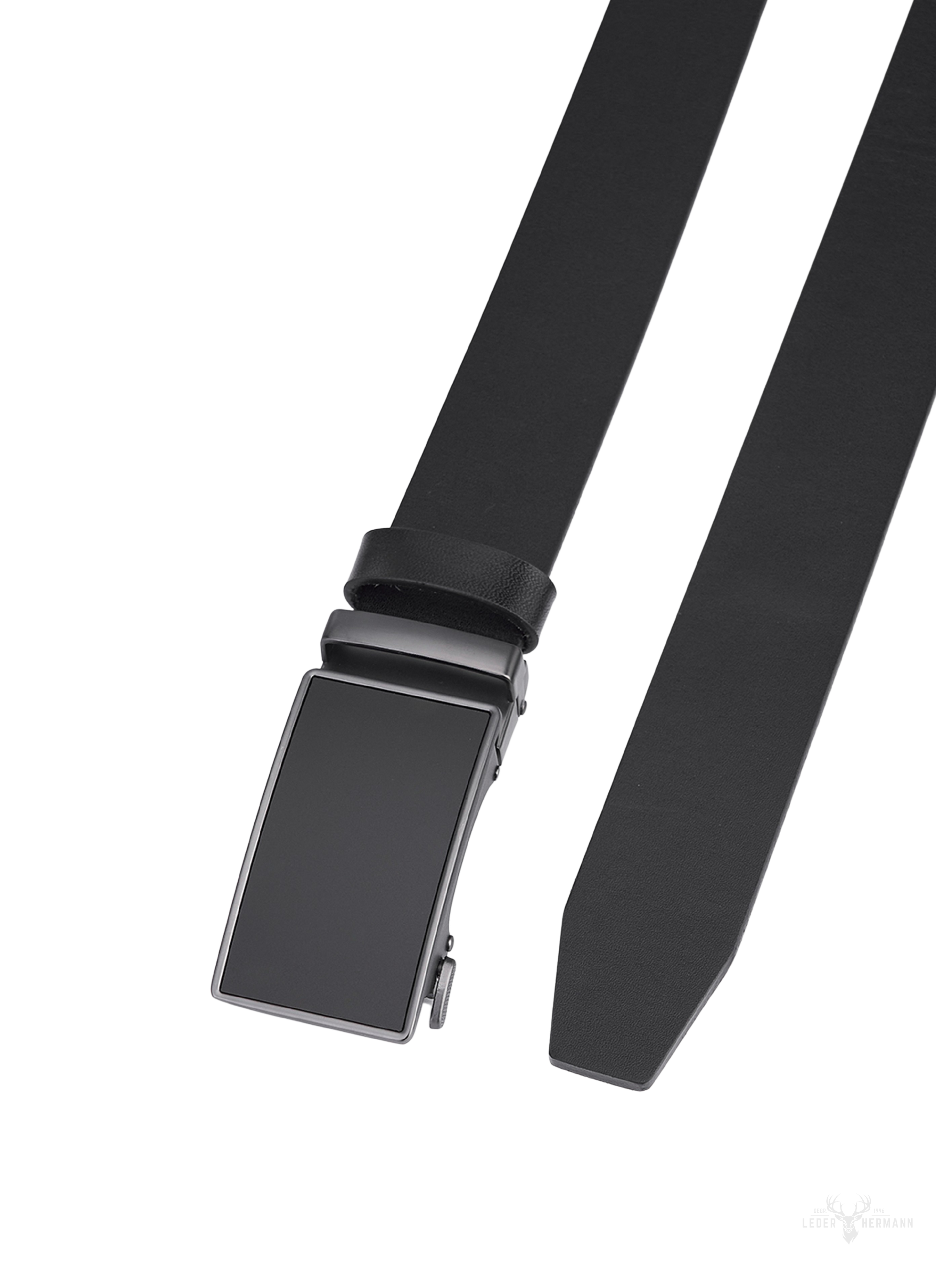 Die moderne, matt-schwarze Schließe verleiht dem Gürtel einen eleganten, geschäftlichen Look und kann ganz einfach mit nur einer Hand geöffnet oder verstellt werden.