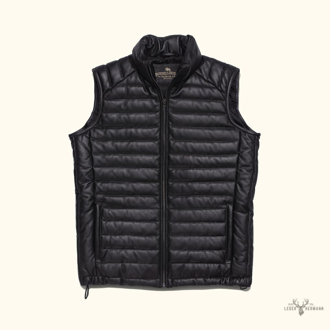 Bridger Leder Daunenweste in Elegantem Schwarz – Komfort und Stil Perfekt Kombiniert