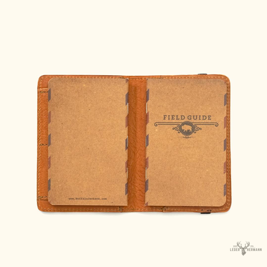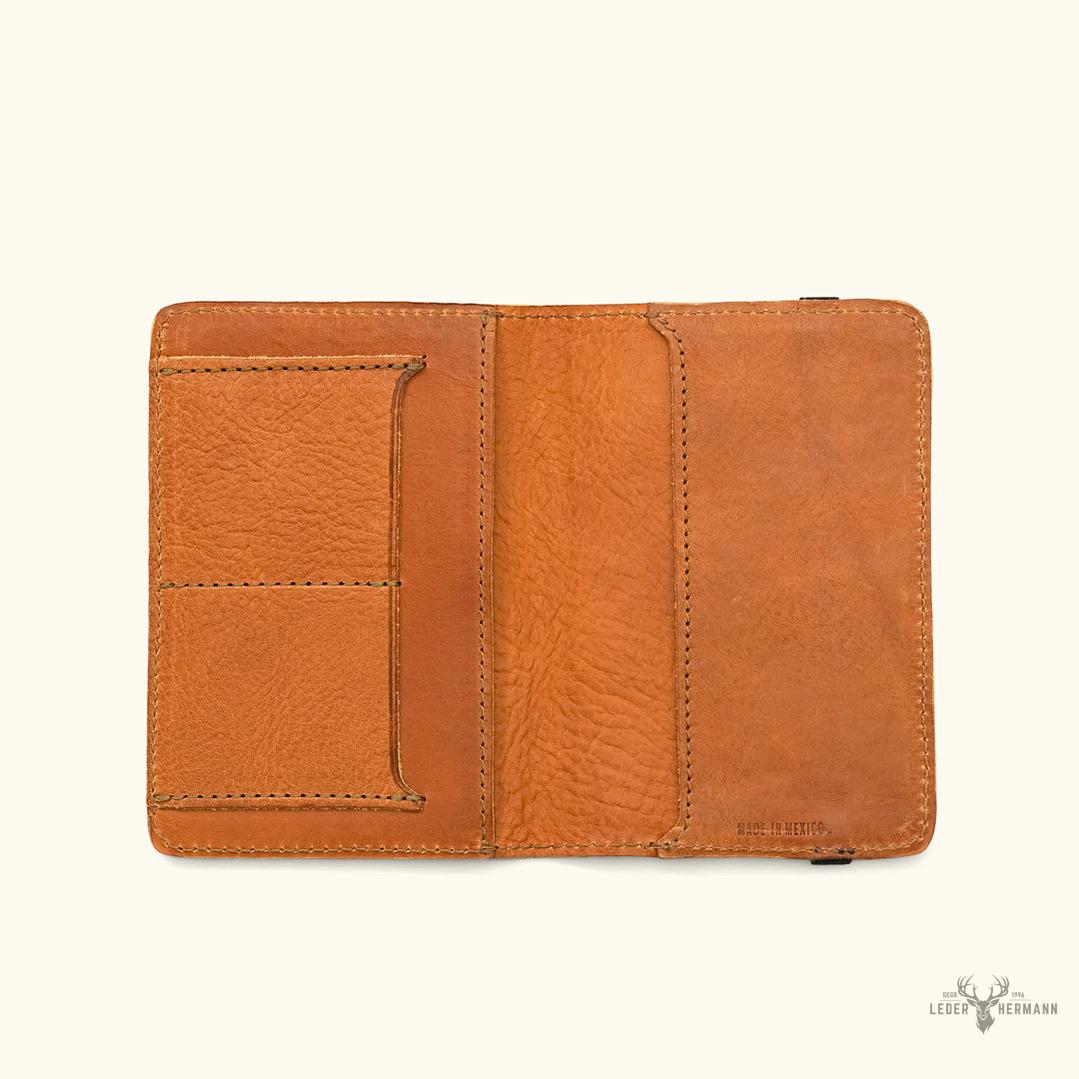 Dakota Leder-Notizbuchhülle & Reisedrucksack für Reisepass, Büffelprägung | Sattelbraun