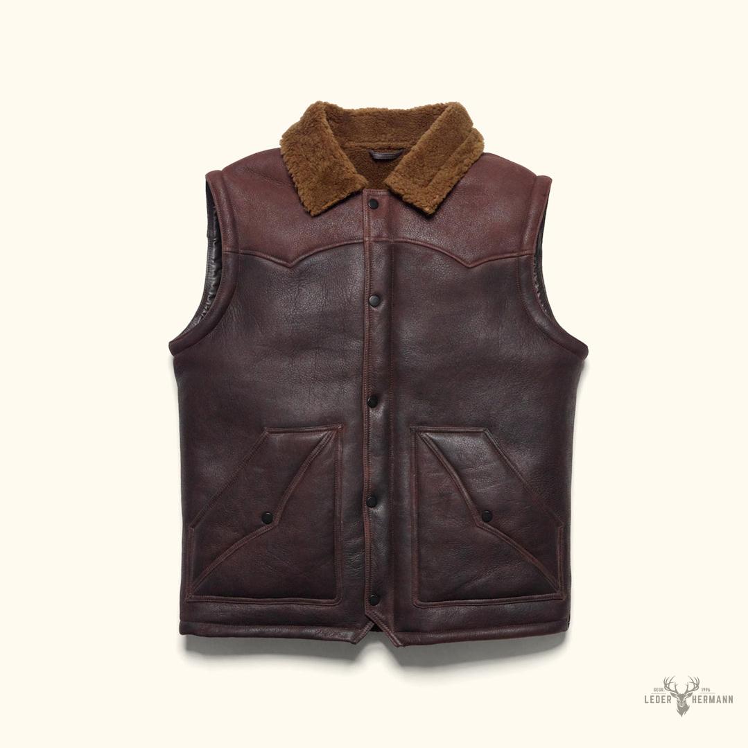 Heben Sie sich stilvoll und stark hervor – diese Herrenweste aus Schaffellleder vereint klassischen Western-Spirit mit unschlagbarer Wärme für jedes Abenteuer.