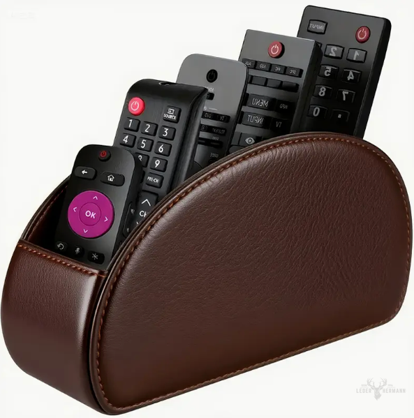 Mit dem Hermann’s Leder Fernbedienungshalter oder für Kosmetik Pinsel usw. bringen Sie endlich Ordnung und Stil in Ihr Wohnzimmer. Gefertigt aus hochwertigem Echtleder, überzeugt dieser Halter durch seine edle Optik, robuste Verarbeitung und zeitlose Eleganz.