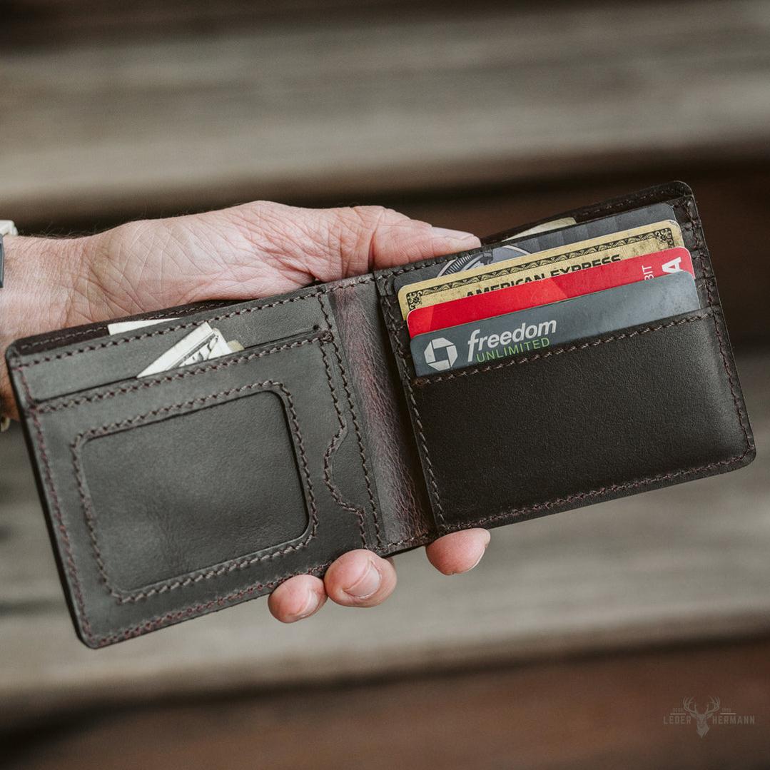 Lederportemonnaie Roosevelt mit dunklem Eichen-Billetfach – Eleganz und Langlebigkeit garantiert