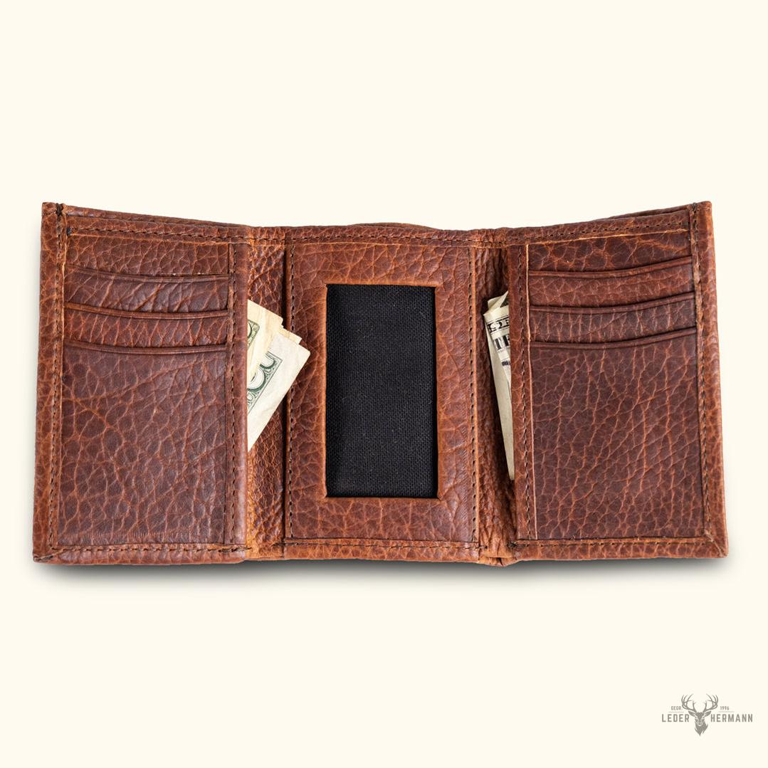 Ryder Reserve Bisonleder Dreifachgeldbörse in stilvollem Braun