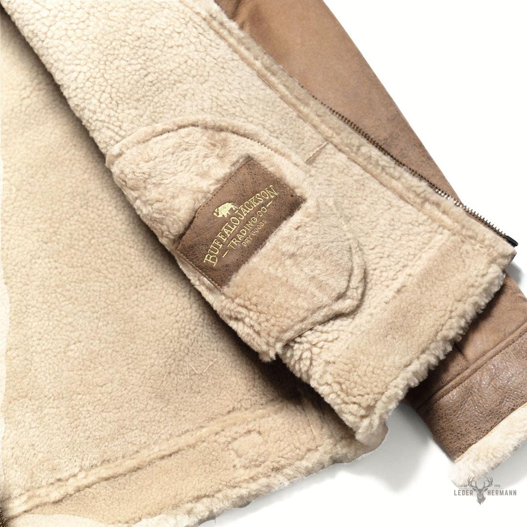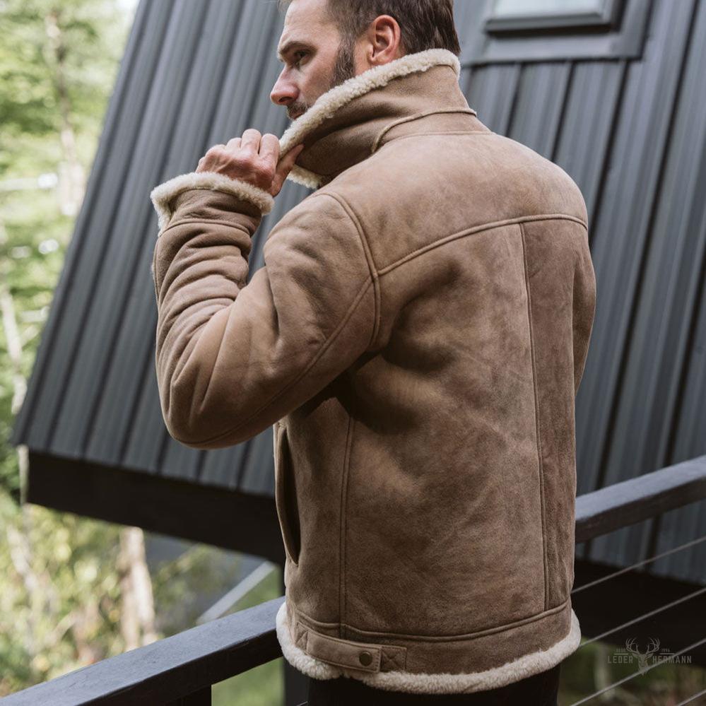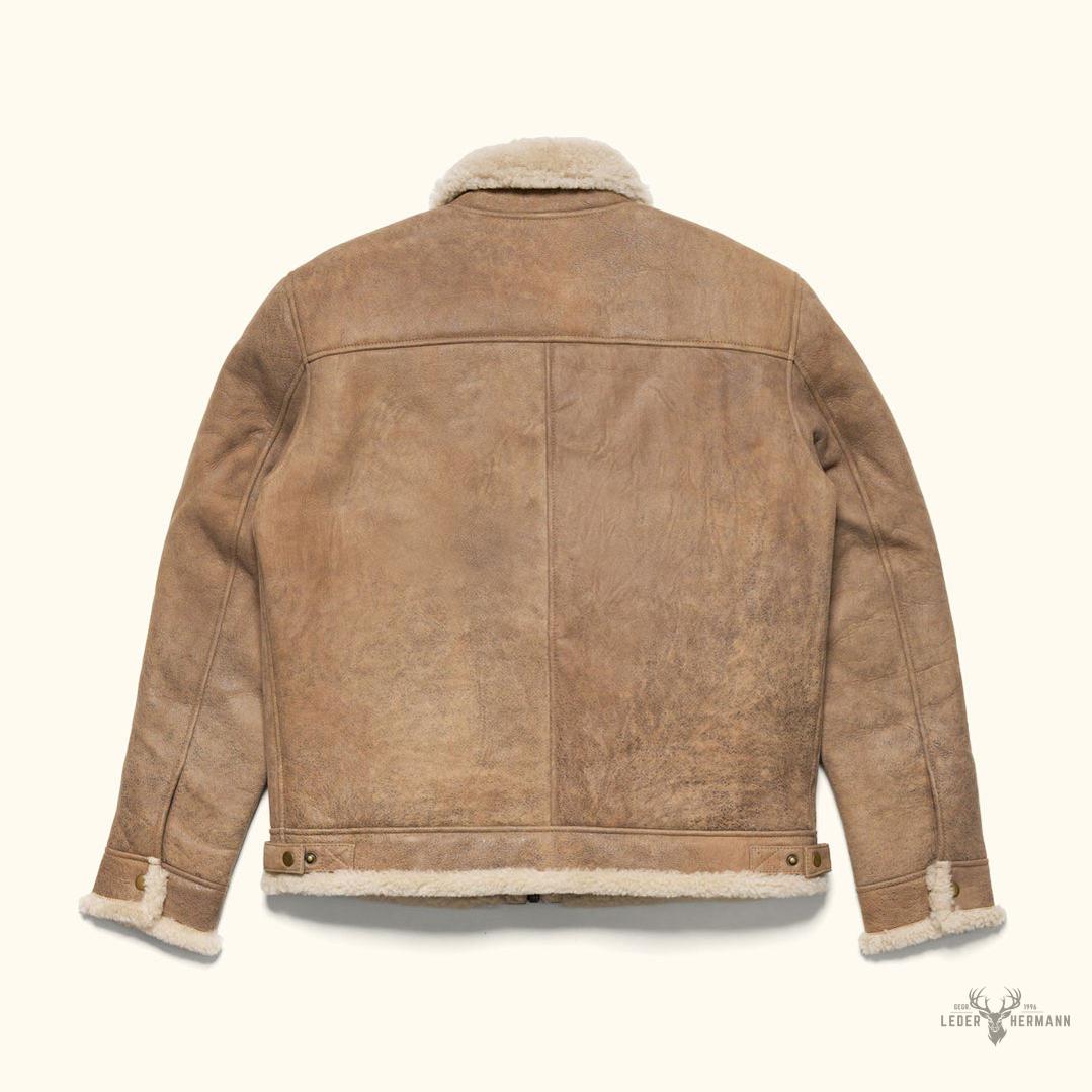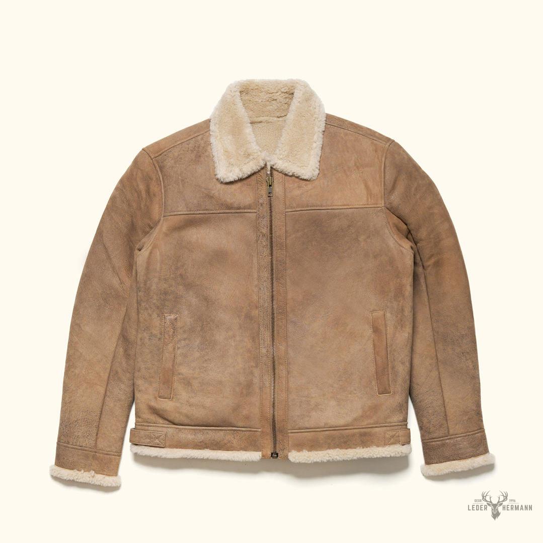 Leder-Bomberjacke aus britischem Lammfell in Sandsteinbraun