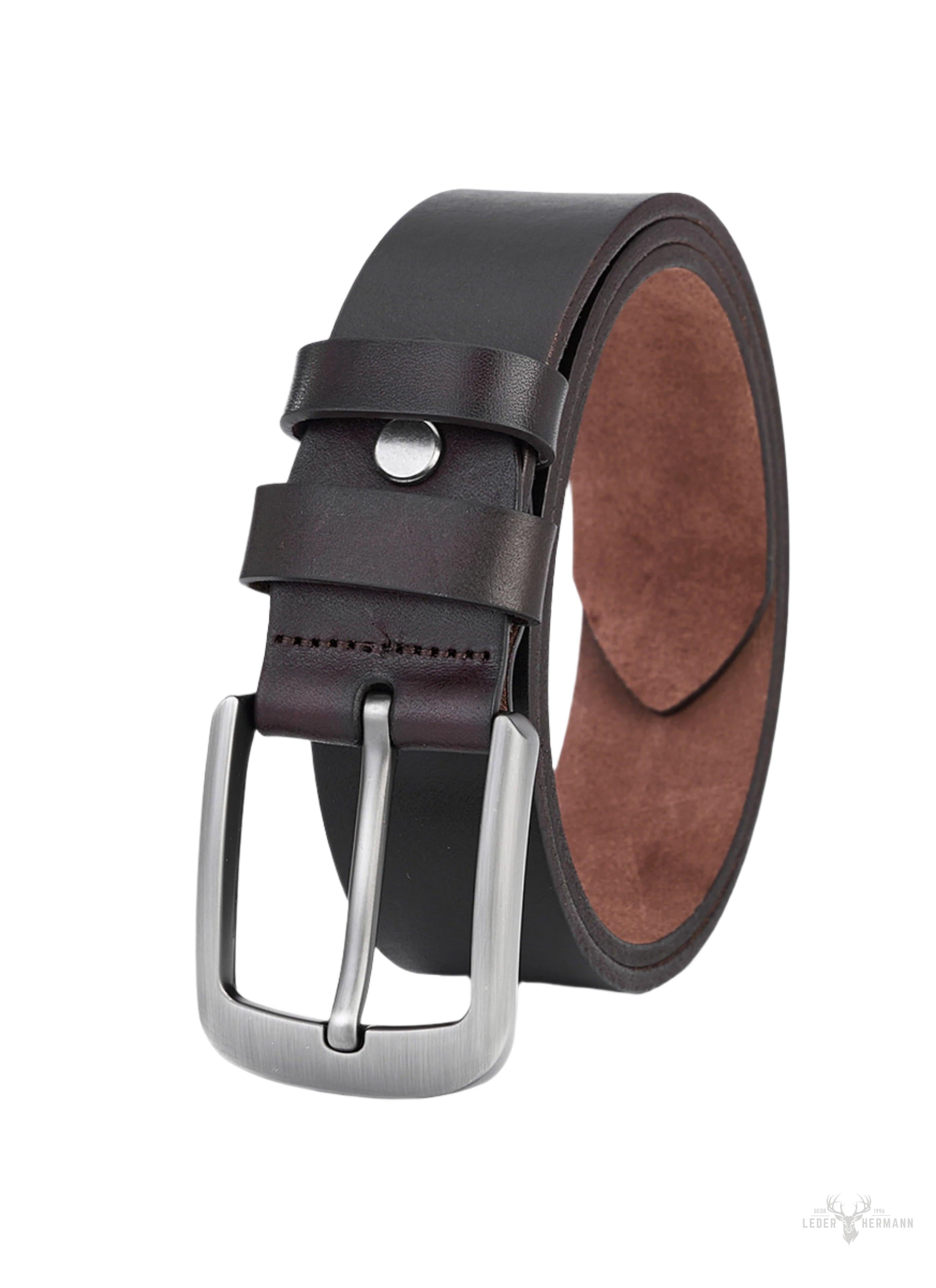 Elegante dunkelbraune Rundlederen Herrenriem – Vollleder und langlebiges Ledergürtel