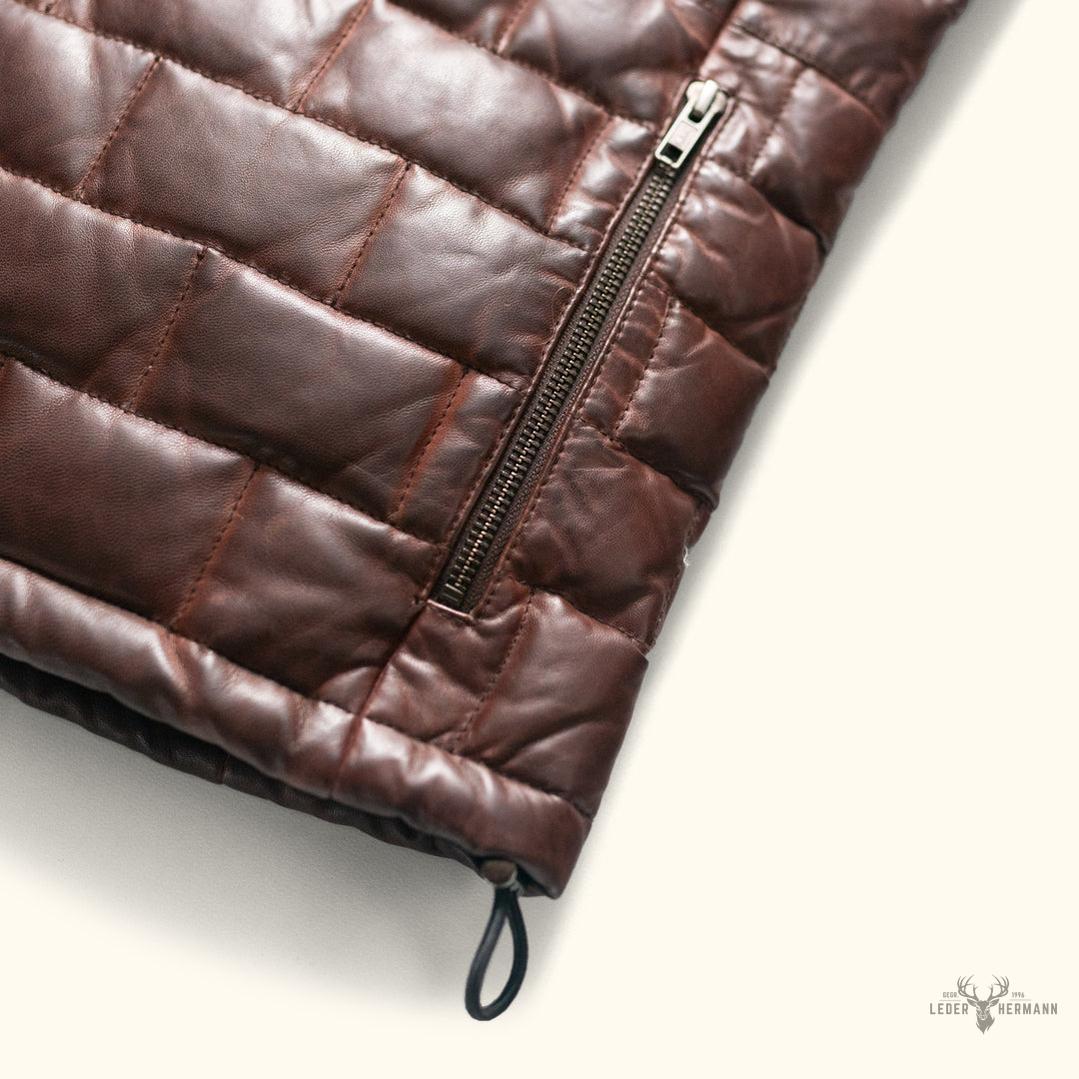 Gefertigt aus hochwertigem Schafsleder, entwickelt diese Weste mit der Zeit eine edle Patina und fühlt sich bereits beim ersten Tragen weich und strapazierfähig an.