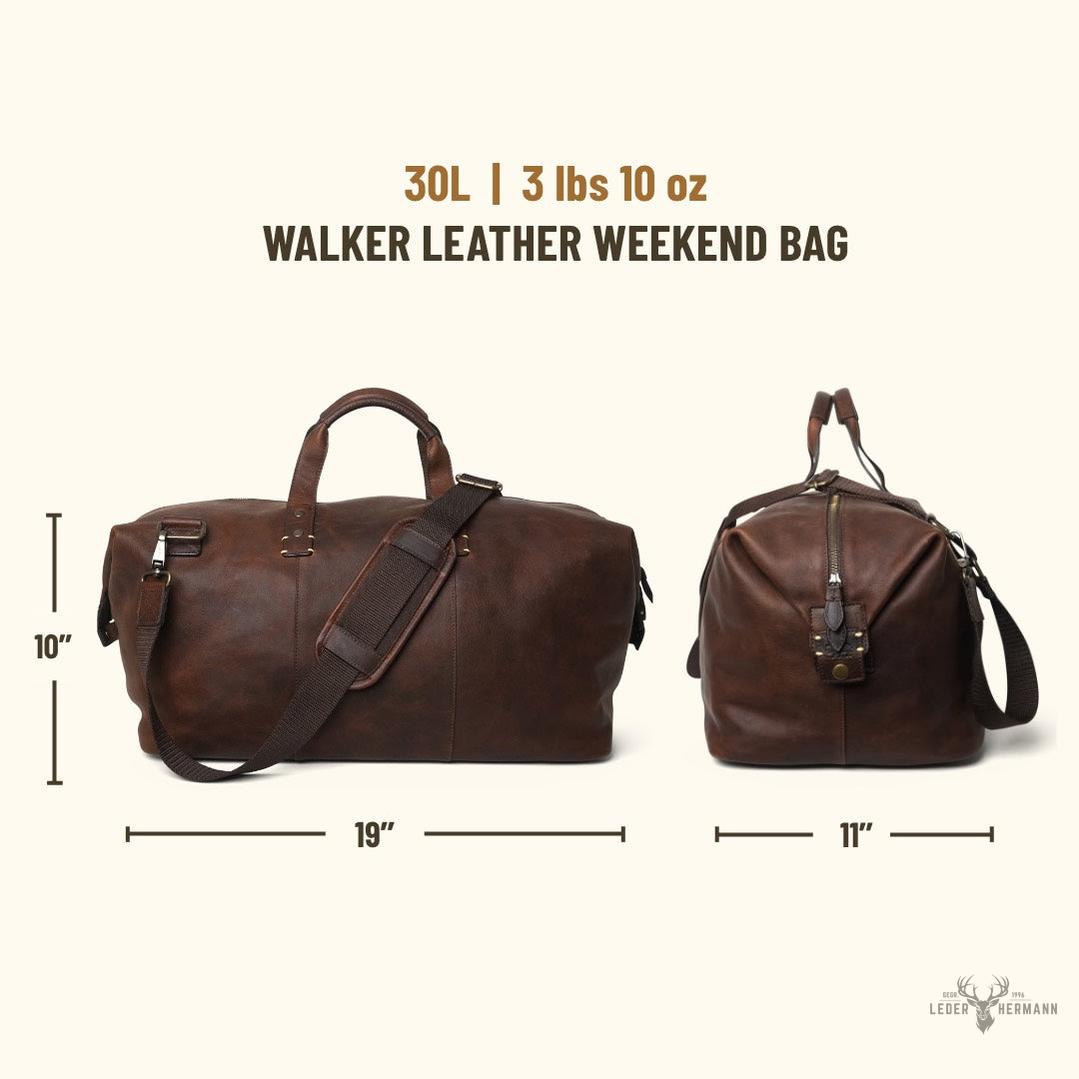 Bereit für Abenteuer? Die Walker Leder-Weekender-Tasche vereint zeitloses Design, robuste Haltbarkeit und clevere Features – damit wird jede Reise einfacher und stilvoller.